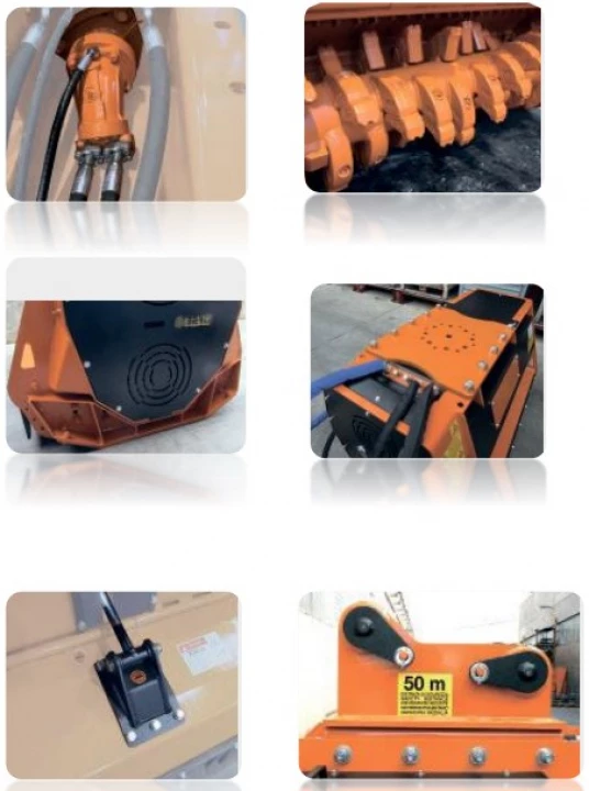 Гидравлический лесной мульчер с неподвижным зубчатым ротором MSV 140, подходит для экскаваторов массой от 15 до 30 тонн. Идеально подходит для расчистки кустарников, хвороста, веток и деревянных стволов, с оптимальным диаметром до 30 см.