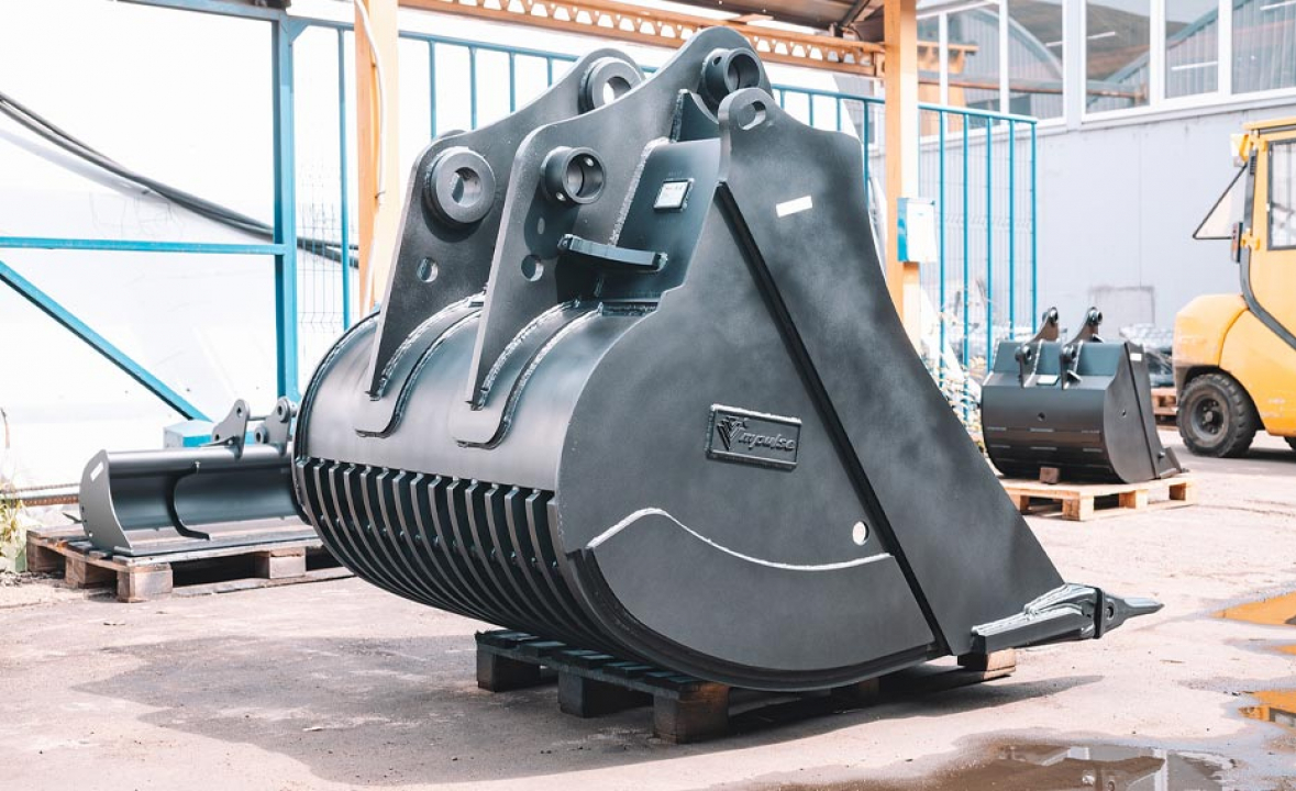 Скелетный (решетчатый) ковш для экскаватора предназначен для отделения мелкой сыпучей части разрабатываемого материала от его крупных фракций. Применяется на строительных площадках, на полигонах по переработке строительного мусора, а также на карьерах по добыче песчано-гравийной смеси, когда необходимо осуществлять первичную сортировку материала перед последующей его переработкой. Скелетный ковш сделан по принципу скального ковша, но вместо использования листовой стали, днище имеет исполнение в виде силового набора ребер, которые формируют ячеистую структуру. В зависимости от выполняемых задач, расстояние между ребрами может быть от 20 мм до 250 мм, чтобы обеспечить необходимый запас прочности в конструкции скелетных ковшей для экскаваторов используются закаленные износостойкие стали.