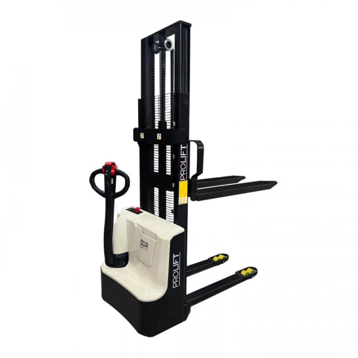Самоходный электрический штабелер PROLIFT M2 SDR 1235, грузоподъемность 1200 кг, высота подъема 3500 мм осуществляет подъем и перемещение грузов благодаря двум электродвигателям без необходимости прилагать физические усилия оператору, что повышает производительность.